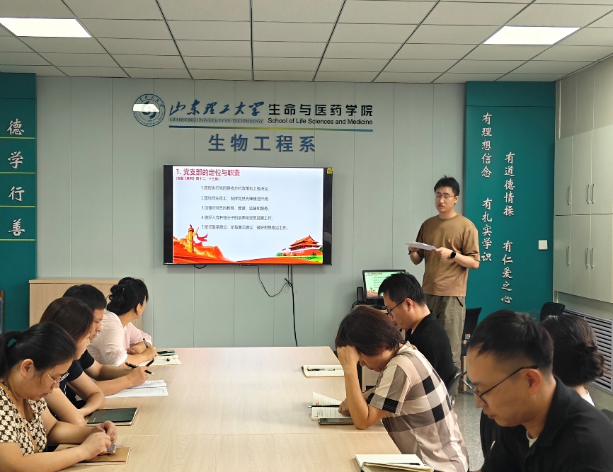 会上,田昊老师首先带领全体党员认真研读文件的主要内容,重点围绕高校院(系)级党组织的功能定位、组织设置、职责要求、队伍建设、制度保障等方面进行了系统解读。会议指出,明确高校基层党组织的职责任务、组织生活制度等,对进一步发挥院(系)级党组织政治核心作用、提升其组织力具有重要意义。会议强调,全体党员要深刻领会文件精神,为生物工程系教工党支部进一步加强自身建设、发挥战斗堡垒作用奠定基础,并提供组织保障。