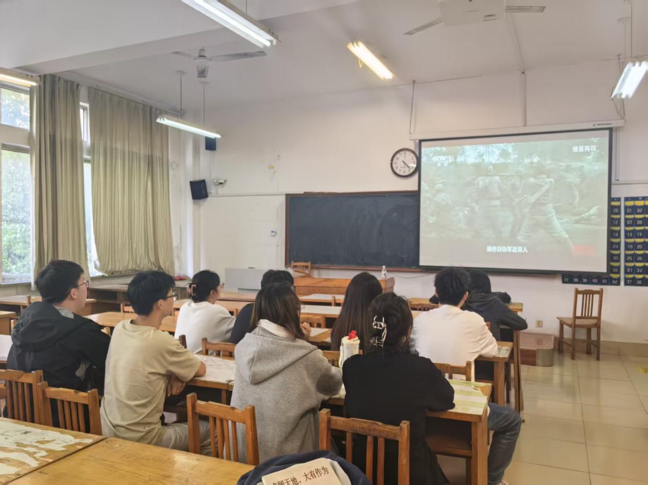 影片结束后,支部书记陈颖洁指出,抗战胜利是中华民族从近代以来陷入深重危机走向伟大复兴的历史转折点。中国共产党的中流砥柱作用是中国人民抗日战争胜利的关键。作为青年党员,要把“天下兴亡、匹夫有责”的担当精神转化为在校努力学习、服务师生的具体行动,争做新时代新征程挺膺担当的奋斗者。