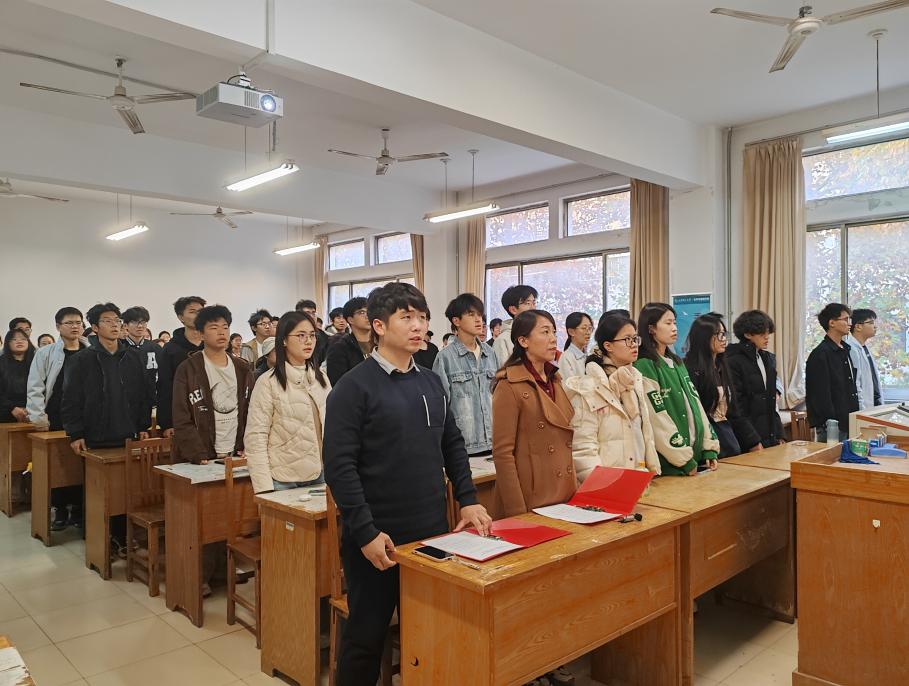 开班仪式结束后,刘丛丛带领全体同学对《中国共产主义青年团章程》进行学习解读,由杜兆康带领进行团的纪律解读。本次开班仪式旨在促进学生坚定理想信念,助力学子在强国建设、民族复兴的新征程上跑出青春“加速度”。