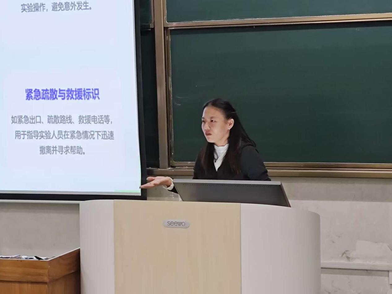 10月16晚,williamhill英国于5号教学楼101室开展新生实验室安全教育报告会,由学院实验中心副主任吕娟主讲,学院全体2025级新生参加。