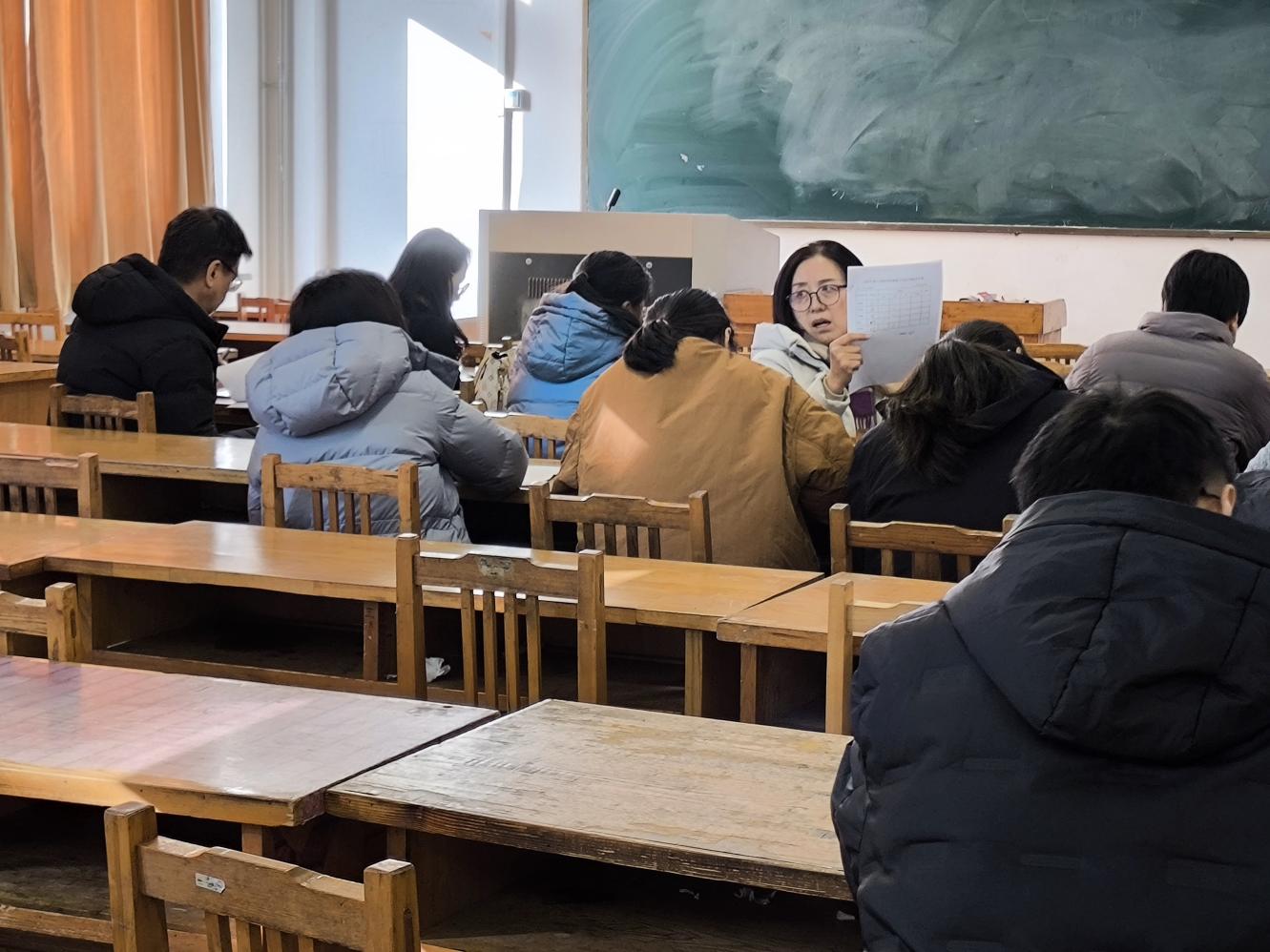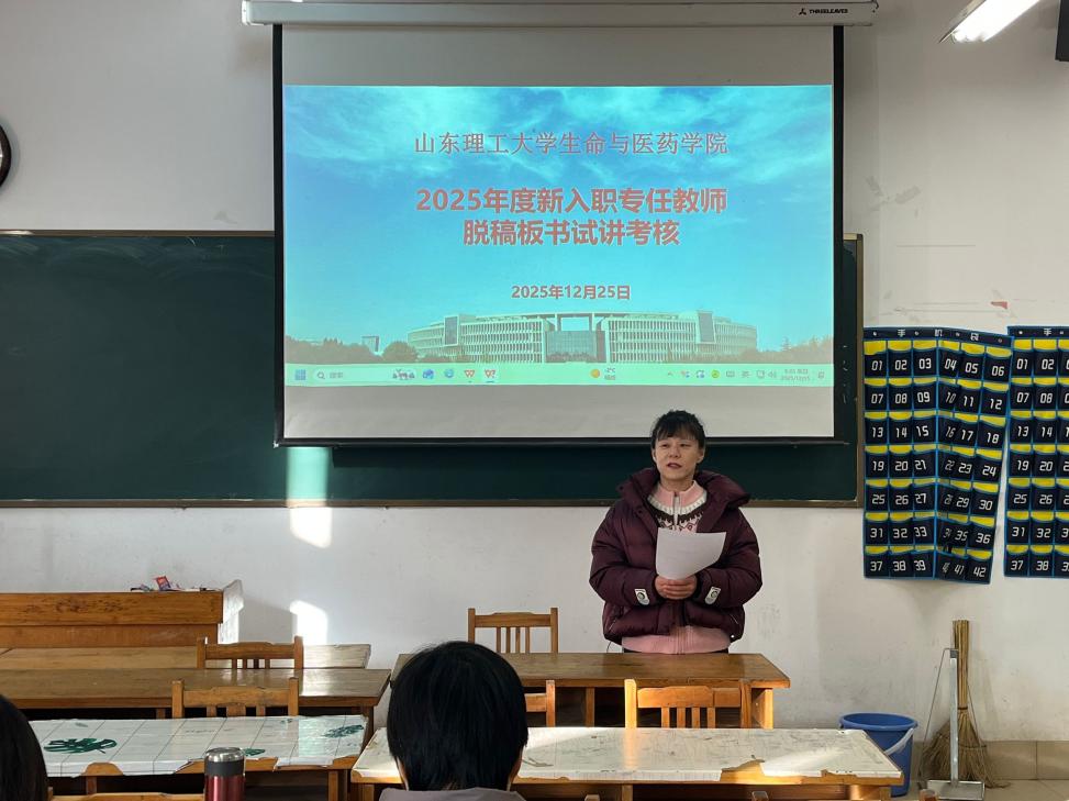 为检验新入职教师第一阶段培训学习及助教工作成效,助力新教师扎实教学基本功、提升课堂教学质量,我院于12月25日上午在13号教学楼201教室组织了2025年度新入职专任教师脱稿板书试讲考核。学院领导、教学督导组成员、优秀教师代表组成考核专家组,学院近三年新入职青年教师到场观摩学习,会议由副院长赵倩主持。