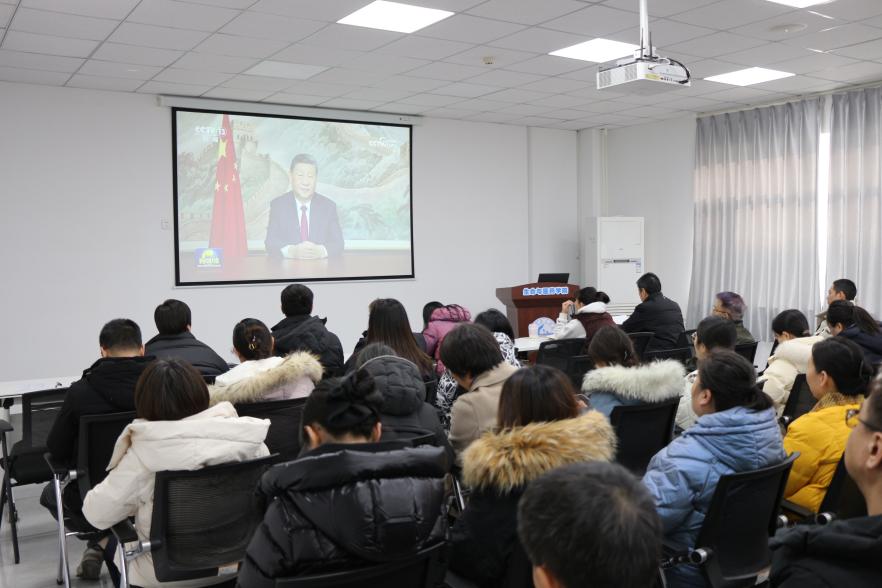 会上,大家集体观看学习了习近平主席2026年新年贺词,重温了过去一年和“十四五”期间,在党中央坚强领导下,我们克服重重困难取得的辉煌成就,同时也进一步明确了我们面临的困难挑战和目标任务。号召大家提振精神,立足岗位,铆足干劲,在推动特色强院建设和学校现代化高水平大学建设中再创佳绩。